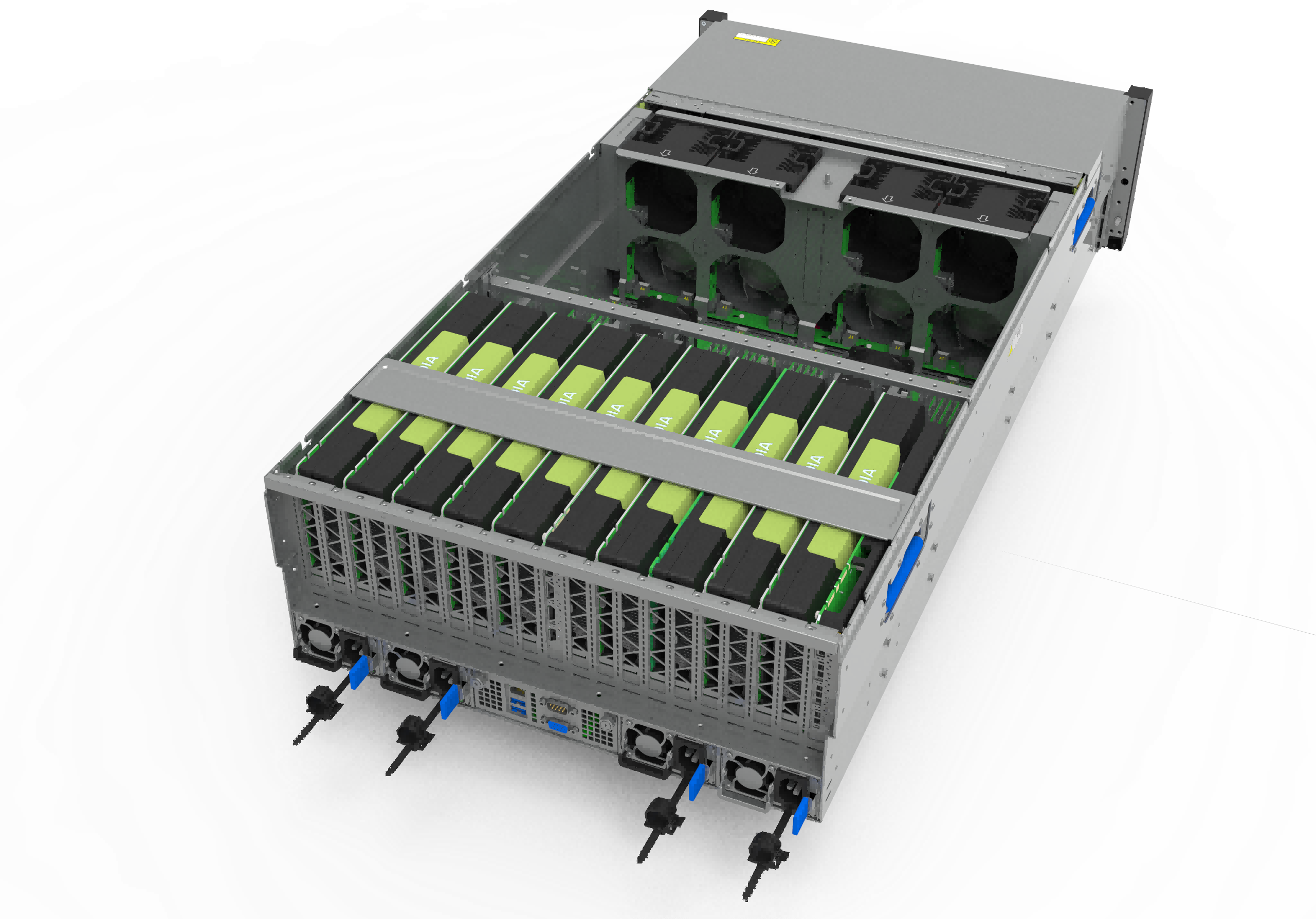 - 服务器可以提供 8 张 NVIDIA/AMD 计算卡,具备先进的专业计算卡能力,提供优于 40 倍的低延时高吞吐量,进而可以实时满足客户更多的请求;